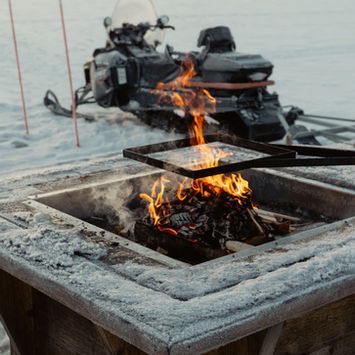 Ni transporteras med skoter och kälke till vår exklusiva flotte. Väl framme väntar en redan uppvärmd bastu för omedelbar avkoppling. Efter bastun tar vi er tillbaka till startpunkten.